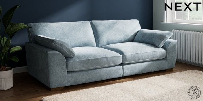 7.3.1 Buy Stamford Grand Relaxed Sit 4 Seater Sofa Plush Chenille Light Blue Large Square Angle - Mid from the Laura Ashley online shop