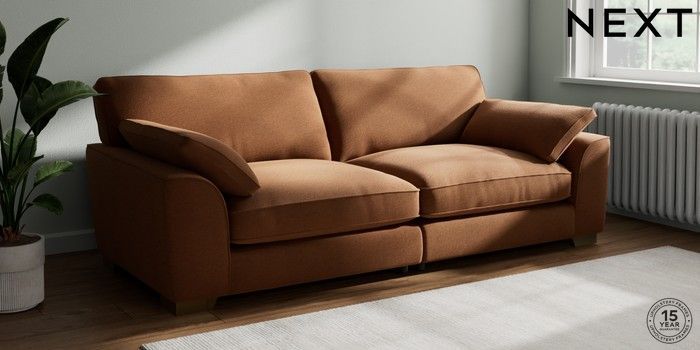 7.3.1 Buy Stamford Grand Relaxed Sit 4 Seater Sofa Ripple Chenille Mid Rust Brown Large Square Angle - Brushed Brass from the Laura Ashley online shop Click here to use our website with more accessibility support, for example screen readers