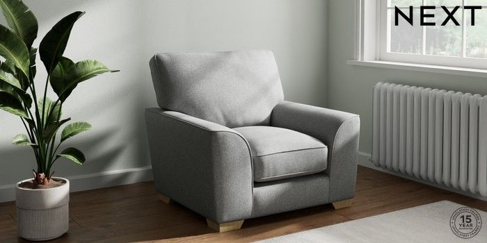 7.3.1 Buy Stamford Grand Relaxed Sit Armchair Chunky Weave Mid Grey Square Angle - Light from the Laura Ashley online shop Click here to use our website with more accessibility support, for example screen readers