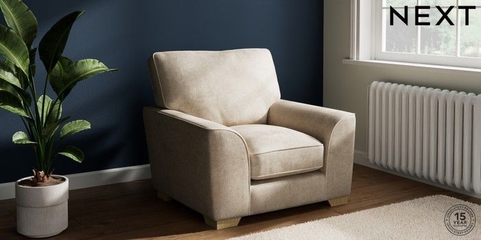 7.3.1 Buy Stamford Grand Relaxed Sit Armchair Plush Chenille Light Natural Square Angle - Light from the Laura Ashley online shop Click here to use our website with more accessibility support, for example screen readers