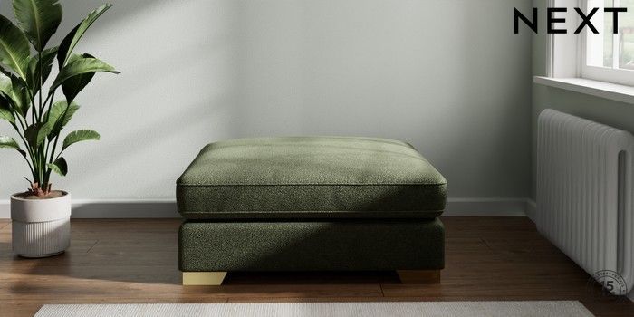 7.2.6 Buy Stamford Grand Relaxed Sit Extra Large Footstool Boucle Chenille Dark Moss Green Square Angle - Brushed Brass from the Laura Ashley online shop Click here to use our website with more accessibility support, for example screen readers