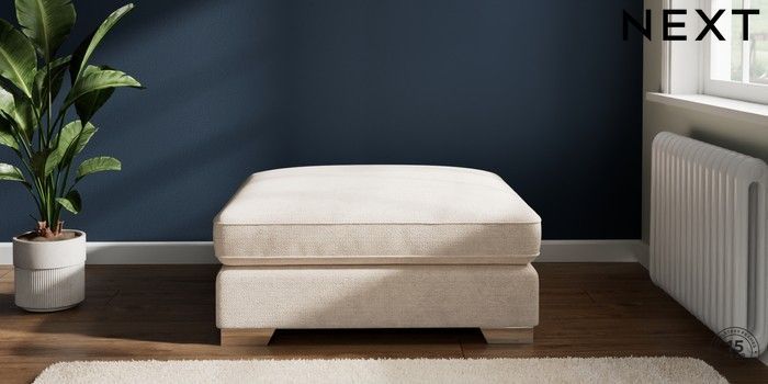 7.2.6 Buy Stamford Grand Relaxed Sit Extra Large Footstool Boucle Chenille Oyster Square Angle - Chrome Metal from the Laura Ashley online shop Click here to use our website with more accessibility support, for example screen readers