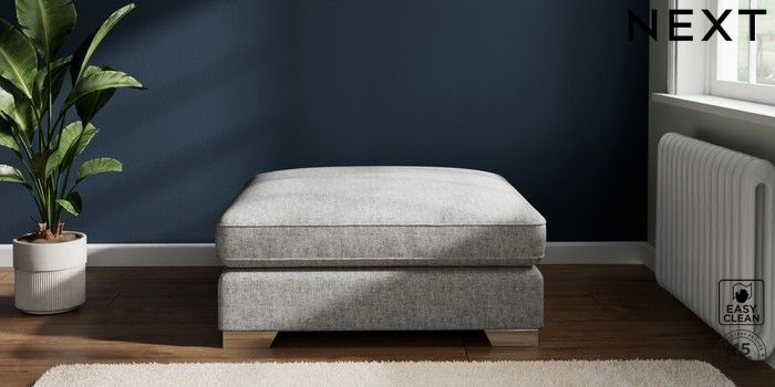 7.2.6 Buy Stamford Grand Relaxed Sit Extra Large Footstool Chunky Boucle Easy Clean Light Grey Square Angle - Chrome Metal from the Laura Ashley online shop Click here to use our website with more accessibility support, for example screen readers
