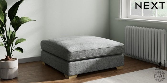 7.3.1 Buy Stamford Grand Relaxed Sit Extra Large Footstool Chunky Boucle Easy Clean Mid Grey Square Angle - Light from the Laura Ashley online shop