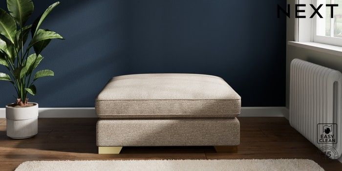 7.2.6 Buy Stamford Grand Relaxed Sit Extra Large Footstool Chunky Boucle Easy Clean Mid Natural Square Angle - Brushed Brass from the Laura Ashley online shop Click here to use our website with more accessibility support, for example screen readers