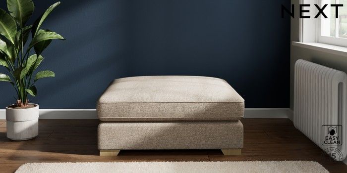 7.2.6 Buy Stamford Grand Relaxed Sit Extra Large Footstool Chunky Boucle Easy Clean Mid Natural Square Angle - Light from the Laura Ashley online shop Click here to use our website with more accessibility support, for example screen readers