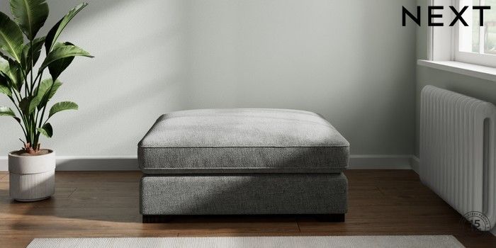 7.2.6 Buy Stamford Grand Relaxed Sit Extra Large Footstool Chunky Chenille Dark Grey Square Angle - Dark from the Laura Ashley online shop Click here to use our website with more accessibility support, for example screen readers