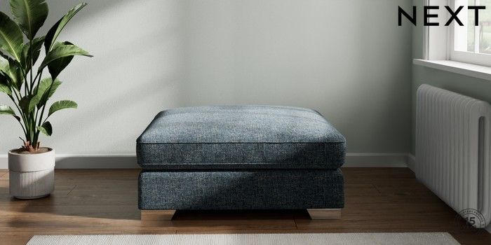 7.2.6 Buy Stamford Grand Relaxed Sit Extra Large Footstool Chunky Chenille Dark Navy Blue Square Angle - Chrome Metal from the Laura Ashley online shop Click here to use our website with more accessibility support, for example screen readers