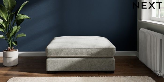 7.2.6 Buy Stamford Grand Relaxed Sit Extra Large Footstool Chunky Chenille Light Grey Square Angle - Dark from the Laura Ashley online shop Click here to use our website with more accessibility support, for example screen readers