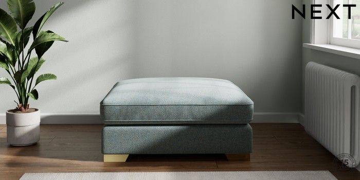 7.2.6 Buy Stamford Grand Relaxed Sit Extra Large Footstool Chunky Marl Mid Blue Square Angle - Brushed Brass from the Laura Ashley online shop Click here to use our website with more accessibility support, for example screen readers