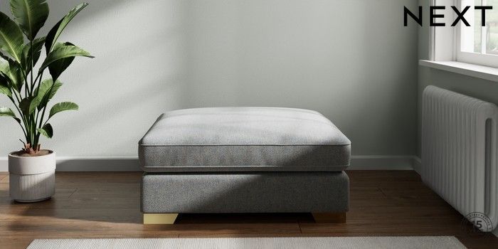 7.2.6 Buy Stamford Grand Relaxed Sit Extra Large Footstool Chunky Marl Mid Grey Square Angle - Brushed Brass from the Laura Ashley online shop Click here to use our website with more accessibility support, for example screen readers