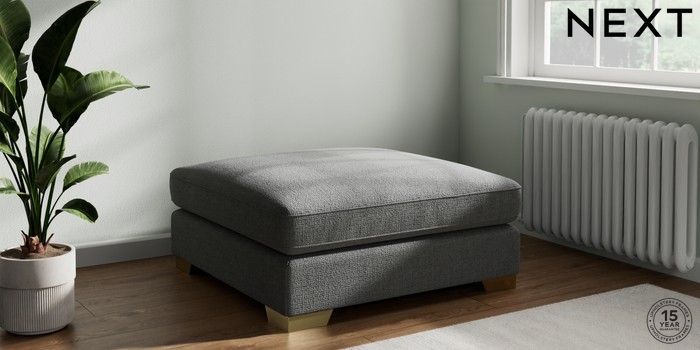 7.3.1 Buy Stamford Grand Relaxed Sit Extra Large Footstool Chunky Texture Dark Grey Square Angle - Brushed Brass from the Laura Ashley online shop