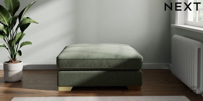 7.2.6 Buy Stamford Grand Relaxed Sit Extra Large Footstool Chunky Texture Mid Forest Green Square Angle - Brushed Brass from the Laura Ashley online shop Click here to use our website with more accessibility support, for example screen readers
