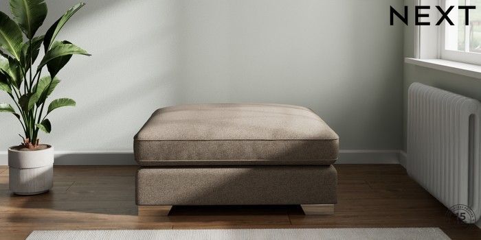 7.2.6 Buy Stamford Grand Relaxed Sit Extra Large Footstool Chunky Weave Dark Natural Square Angle - Chrome Metal from the Laura Ashley online shop Click here to use our website with more accessibility support, for example screen readers
