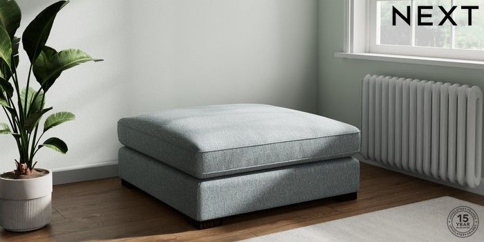 7.3.1 Buy Stamford Grand Relaxed Sit Extra Large Footstool Chunky Weave Mid Blue Square Angle - Dark from the Laura Ashley online shop