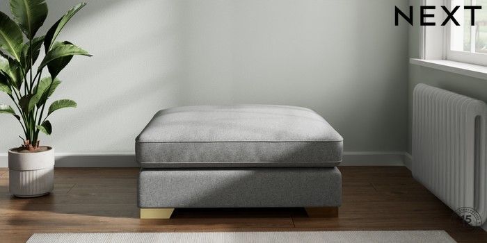 7.2.6 Buy Stamford Grand Relaxed Sit Extra Large Footstool Chunky Weave Mid Grey Square Angle - Brushed Brass from the Laura Ashley online shop Click here to use our website with more accessibility support, for example screen readers