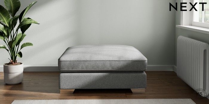 7.2.6 Buy Stamford Grand Relaxed Sit Extra Large Footstool Chunky Weave Mid Grey Square Angle - Chrome Metal from the Laura Ashley online shop Click here to use our website with more accessibility support, for example screen readers