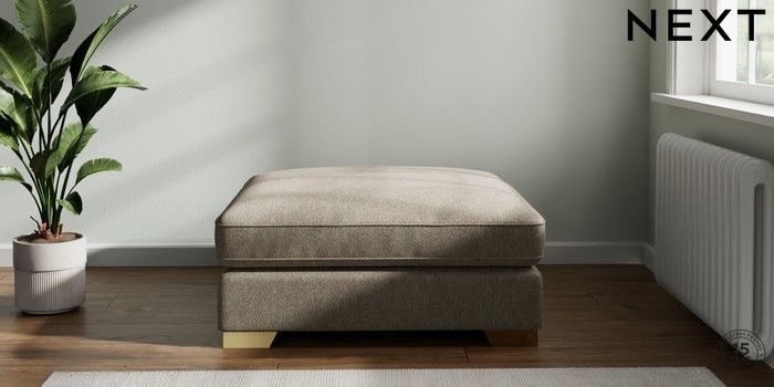 7.2.6 Buy Stamford Grand Relaxed Sit Extra Large Footstool Cotswold Chenille Mid Mink Brown Square Angle - Brushed Brass from the Laura Ashley online shop Click here to use our website with more accessibility support, for example screen readers