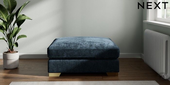 7.2.6 Buy Stamford Grand Relaxed Sit Extra Large Footstool Distressed Velour Midnight Blue Square Angle - Brushed Brass from the Laura Ashley online shop Click here to use our website with more accessibility support, for example screen readers