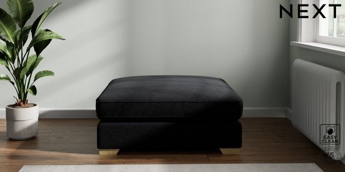7.2.6 Buy Stamford Grand Relaxed Sit Extra Large Footstool Fine Chenille Easy Clean Black Square Angle - Light from the Laura Ashley online shop Click here to use our website with more accessibility support, for example screen readers