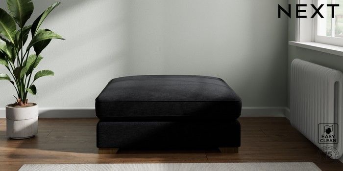 7.2.6 Buy Stamford Grand Relaxed Sit Extra Large Footstool Fine Chenille Easy Clean Black Square Angle - Mid from the Laura Ashley online shop Click here to use our website with more accessibility support, for example screen readers