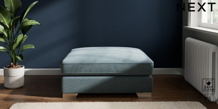 7.2.6 Buy Stamford Grand Relaxed Sit Extra Large Footstool Fine Chenille Easy Clean Mid Blue Square Angle - Chrome Metal from the Laura Ashley online shop Click here to use our website with more accessibility support, for example screen readers