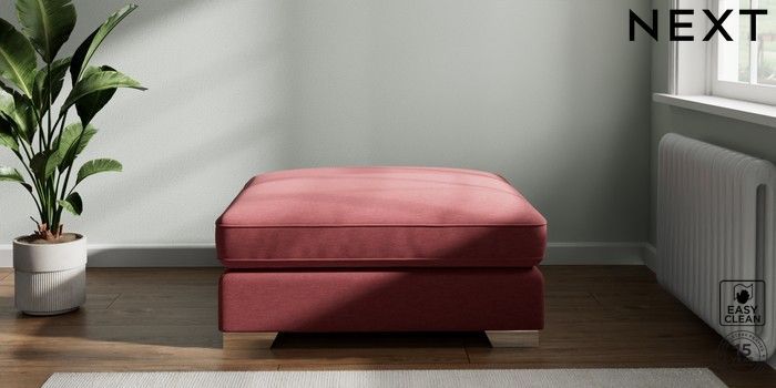 7.2.6 Buy Stamford Grand Relaxed Sit Extra Large Footstool Fine Chenille Easy Clean Mid Pink Square Angle - Chrome Metal from the Laura Ashley online shop Click here to use our website with more accessibility support, for example screen readers