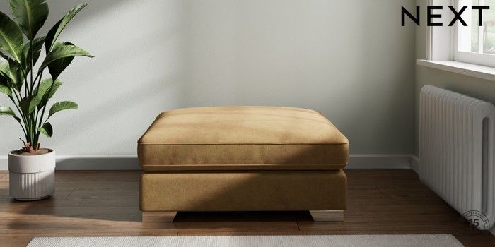 7.2.6 Buy Stamford Grand Relaxed Sit Extra Large Footstool Luxe Chenille Honey Yellow Square Angle - Chrome Metal from the Laura Ashley online shop Click here to use our website with more accessibility support, for example screen readers