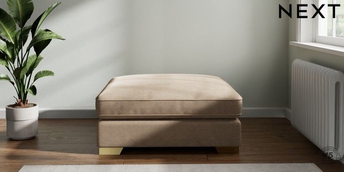 7.2.6 Buy Stamford Grand Relaxed Sit Extra Large Footstool Luxe Chenille Mid Camel Beige Square Angle - Brushed Brass from the Laura Ashley online shop Click here to use our website with more accessibility support, for example screen readers