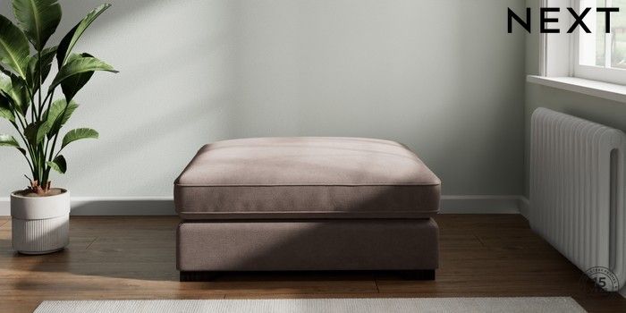7.2.6 Buy Stamford Grand Relaxed Sit Extra Large Footstool Luxe Chenille Mink Brown Square Angle - Dark from the Laura Ashley online shop Click here to use our website with more accessibility support, for example screen readers