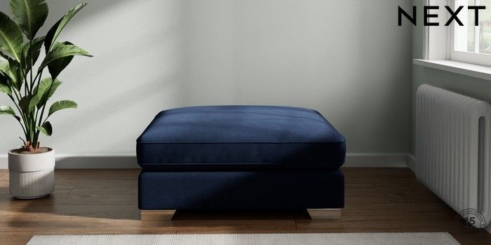 7.2.6 Buy Stamford Grand Relaxed Sit Extra Large Footstool Luxe Chenille Navy Blue Square Angle - Chrome Metal from the Laura Ashley online shop Click here to use our website with more accessibility support, for example screen readers