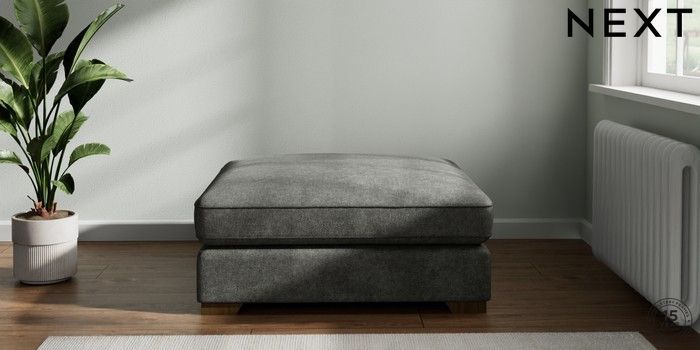 7.2.6 Buy Stamford Grand Relaxed Sit Extra Large Footstool Plush Chenille Dark Grey Square Angle - Mid from the Laura Ashley online shop Click here to use our website with more accessibility support, for example screen readers
