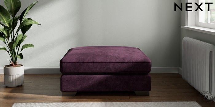 7.2.6 Buy Stamford Grand Relaxed Sit Extra Large Footstool Plush Chenille Dark Plum Purple Square Angle - Gunmetal from the Laura Ashley online shop Click here to use our website with more accessibility support, for example screen readers
