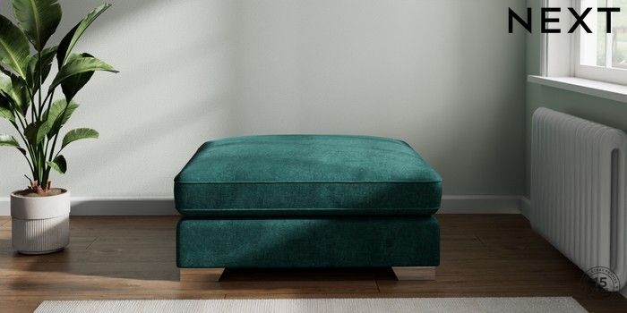 7.2.6 Buy Stamford Grand Relaxed Sit Extra Large Footstool Plush Chenille Dark Teal Green Square Angle - Chrome Metal from the Laura Ashley online shop Click here to use our website with more accessibility support, for example screen readers