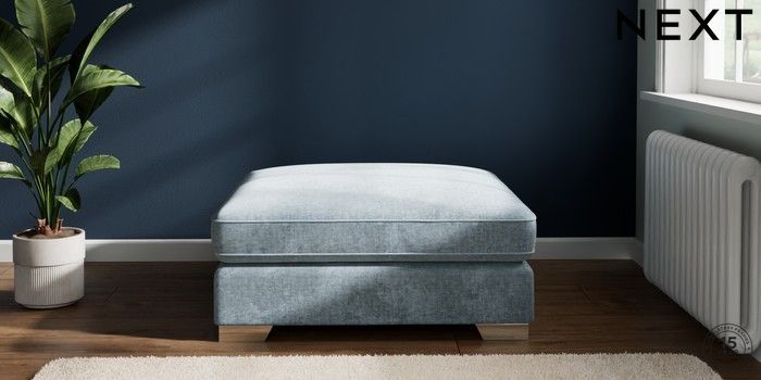 7.2.6 Buy Stamford Grand Relaxed Sit Extra Large Footstool Plush Chenille Light Blue Square Angle - Chrome Metal from the Laura Ashley online shop Click here to use our website with more accessibility support, for example screen readers