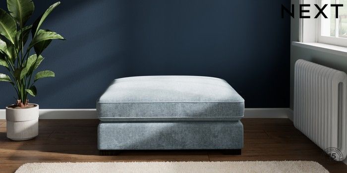 7.2.6 Buy Stamford Grand Relaxed Sit Extra Large Footstool Plush Chenille Light Blue Square Angle - Dark from the Laura Ashley online shop Click here to use our website with more accessibility support, for example screen readers