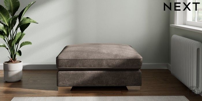 7.2.6 Buy Stamford Grand Relaxed Sit Extra Large Footstool Plush Chenille Mink Brown Square Angle - Chrome Metal from the Laura Ashley online shop Click here to use our website with more accessibility support, for example screen readers