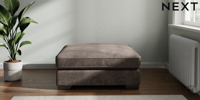 7.2.6 Buy Stamford Grand Relaxed Sit Extra Large Footstool Plush Chenille Mink Brown Square Angle - Gunmetal from the Laura Ashley online shop Click here to use our website with more accessibility support, for example screen readers