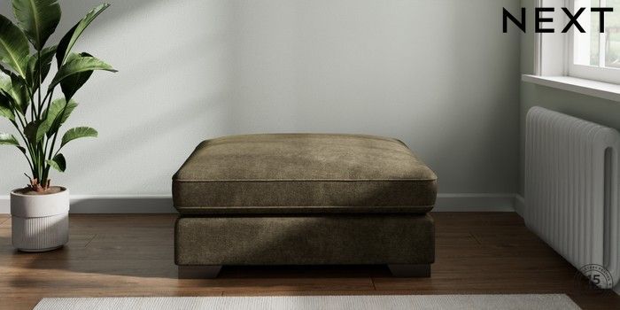 7.2.6 Buy Stamford Grand Relaxed Sit Extra Large Footstool Plush Chenille Moss Green Square Angle - Gunmetal from the Laura Ashley online shop Click here to use our website with more accessibility support, for example screen readers