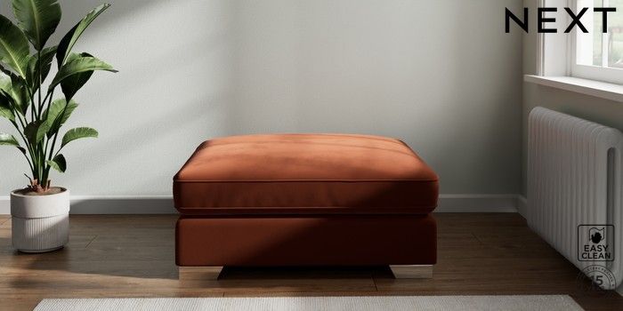 7.2.6 Buy Stamford Grand Relaxed Sit Extra Large Footstool Plush Velvet Easy Clean Ginger Orange Square Angle - Chrome Metal from the Laura Ashley online shop Click here to use our website with more accessibility support, for example screen readers