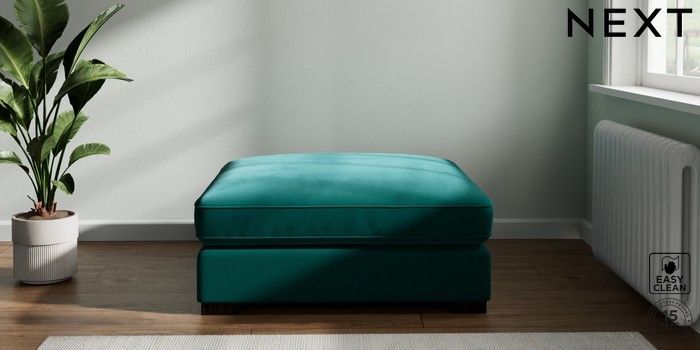 7.2.6 Buy Stamford Grand Relaxed Sit Extra Large Footstool Plush Velvet Easy Clean Juniper Green Square Angle - Dark from the Laura Ashley online shop Click here to use our website with more accessibility support, for example screen readers