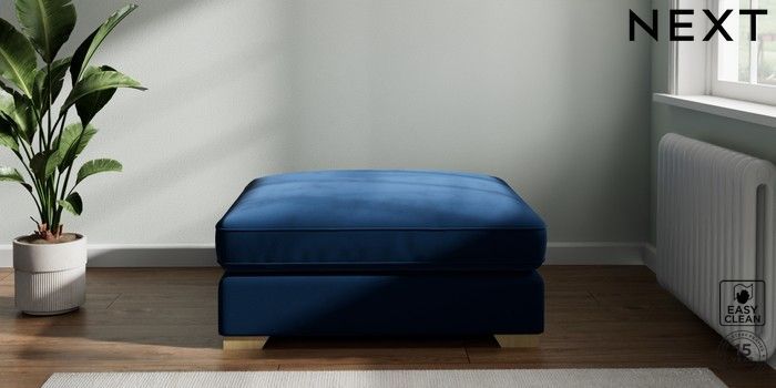 7.2.6 Buy Stamford Grand Relaxed Sit Extra Large Footstool Plush Velvet Easy Clean Navy Blue Square Angle - Light from the Laura Ashley online shop Click here to use our website with more accessibility support, for example screen readers