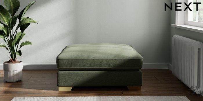 7.2.6 Buy Stamford Grand Relaxed Sit Extra Large Footstool Relaxed Linen Look Dark Green Square Angle - Brushed Brass from the Laura Ashley online shop Click here to use our website with more accessibility support, for example screen readers