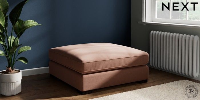 7.3.1 Buy Stamford Grand Relaxed Sit Extra Large Footstool Relaxed Linen Look Light Rust Brown Square Angle - Dark from the Laura Ashley online shop