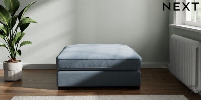 7.2.6 Buy Stamford Grand Relaxed Sit Extra Large Footstool Relaxed Linen Look Mid Blue Square Angle - Dark from the Laura Ashley online shop Click here to use our website with more accessibility support, for example screen readers