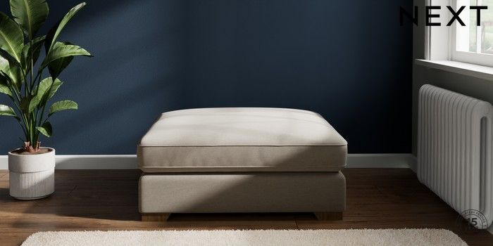7.2.6 Buy Stamford Grand Relaxed Sit Extra Large Footstool Ripple Chenille Light Natural Square Angle - Mid from the Laura Ashley online shop Click here to use our website with more accessibility support, for example screen readers