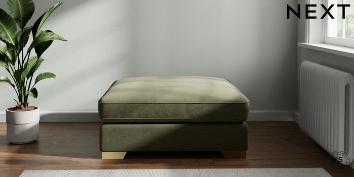 7.2.6 Buy Stamford Grand Relaxed Sit Extra Large Footstool Ripple Chenille Mid Moss Green Square Angle - Brushed Brass from the Laura Ashley online shop Click here to use our website with more accessibility support, for example screen readers