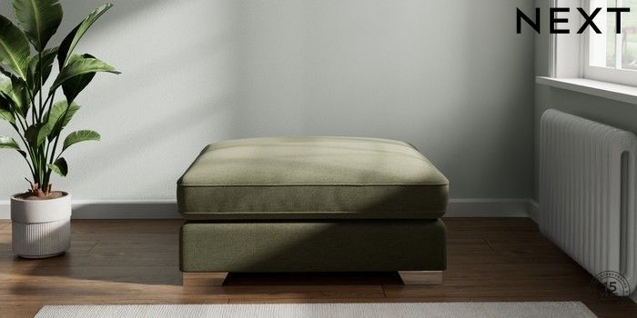 7.2.6 Buy Stamford Grand Relaxed Sit Extra Large Footstool Ripple Chenille Mid Moss Green Square Angle - Chrome Metal from the Laura Ashley online shop Click here to use our website with more accessibility support, for example screen readers
