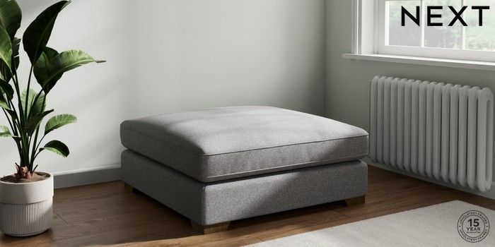 7.3.1 Buy Stamford Grand Relaxed Sit Extra Large Footstool Studio Chenille Mid Grey Square Angle - Mid from the Laura Ashley online shop