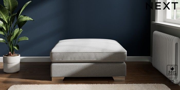 7.2.6 Buy Stamford Grand Relaxed Sit Extra Large Footstool Tweedy Blend Easy Clean Light Silver Grey Square Angle - Chrome Metal from the Laura Ashley online shop Click here to use our website with more accessibility support, for example screen readers